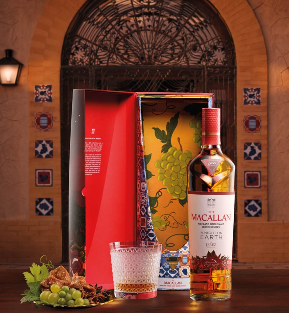 Ein Paradebeispiel für die Kunstfertigkeit von The Macallan ist die exklusive Edition A Night on Earth in Jerez. Dieser Single Malt Whisky feiert die Verbindung zwischen Schottland und Jerez de la Frontera, der berühmten Sherry-Region in Spanien. Gereift in Sherry-Eichenfässern, begeistert er mit Aromen von Orangenmarmelade, gerösteten Nüssen und einem Hauch von Weihnachtsgewürzen – ein luxuriöses Erlebnis für Nase und Gaumen.